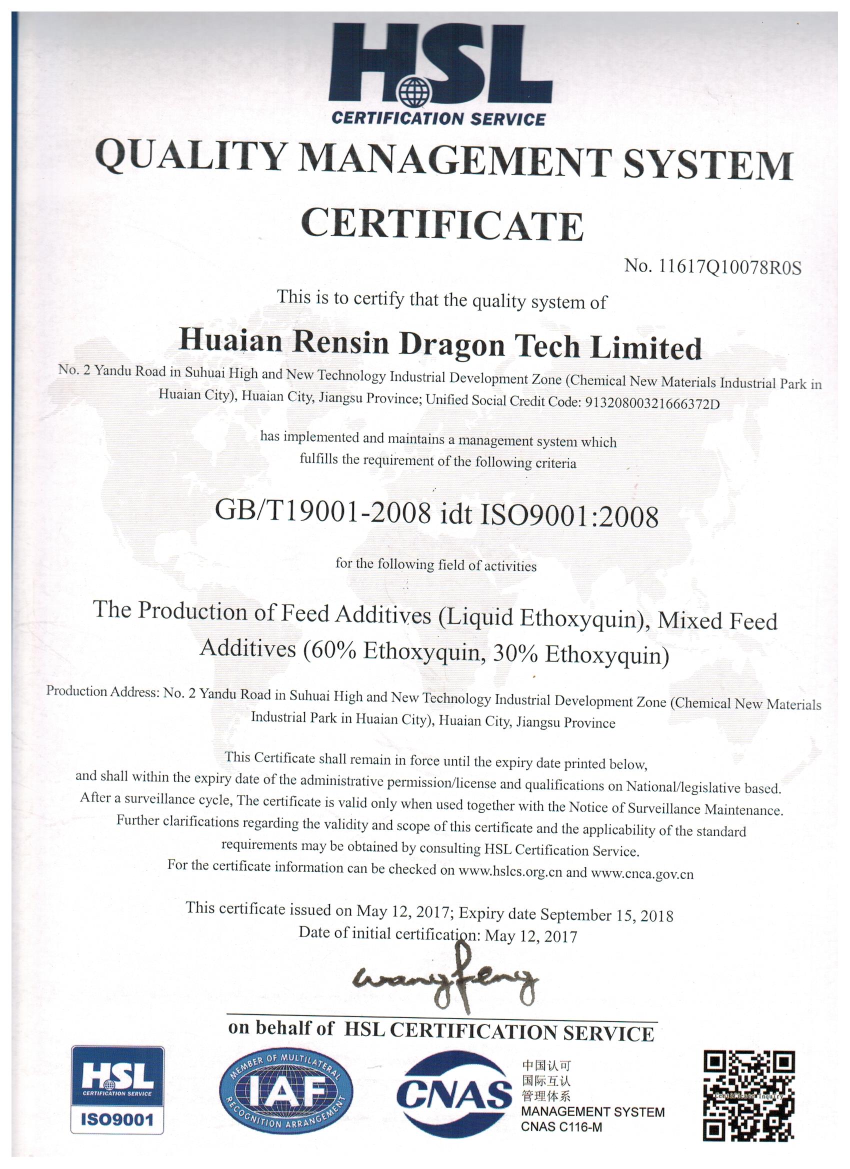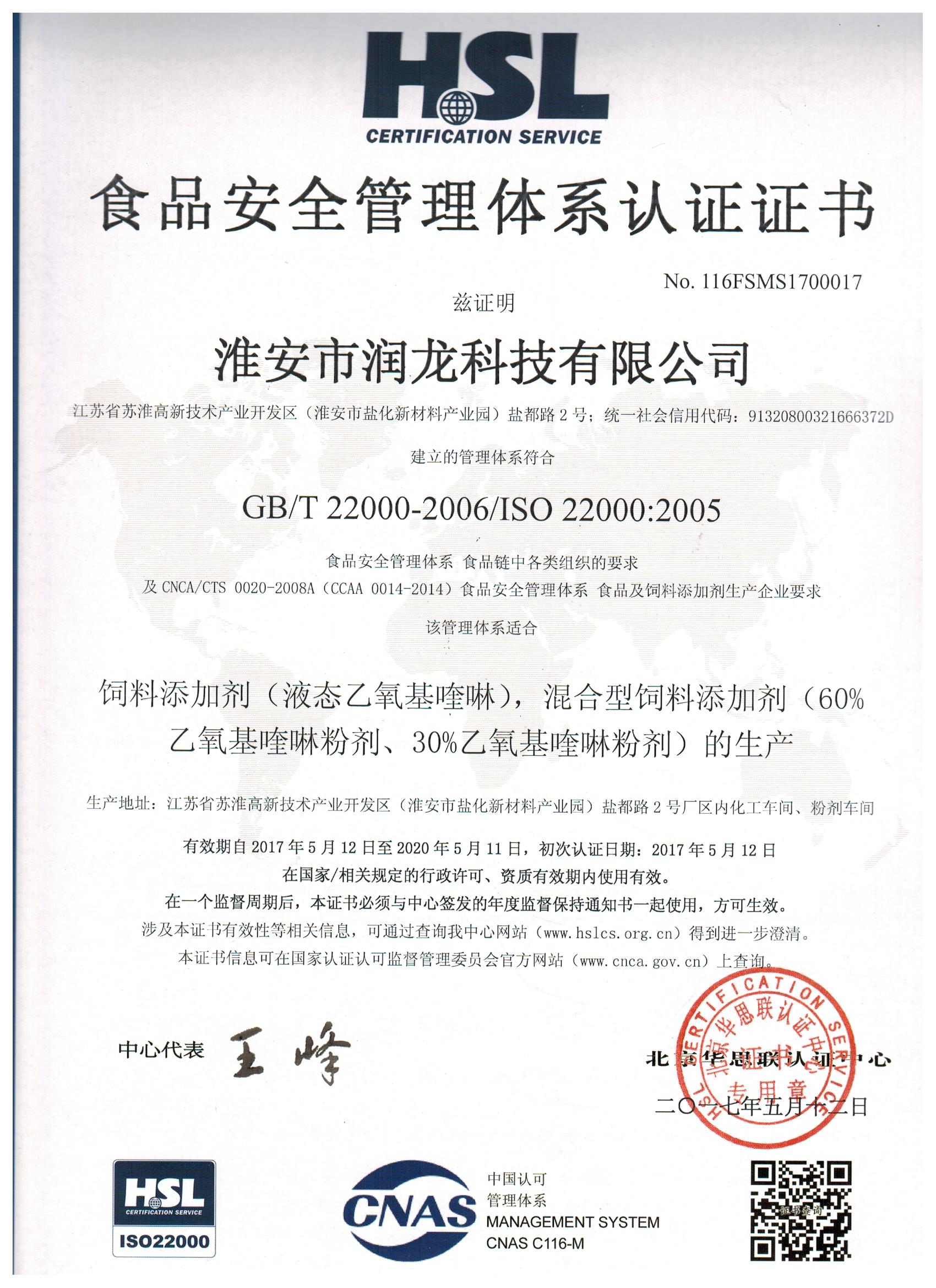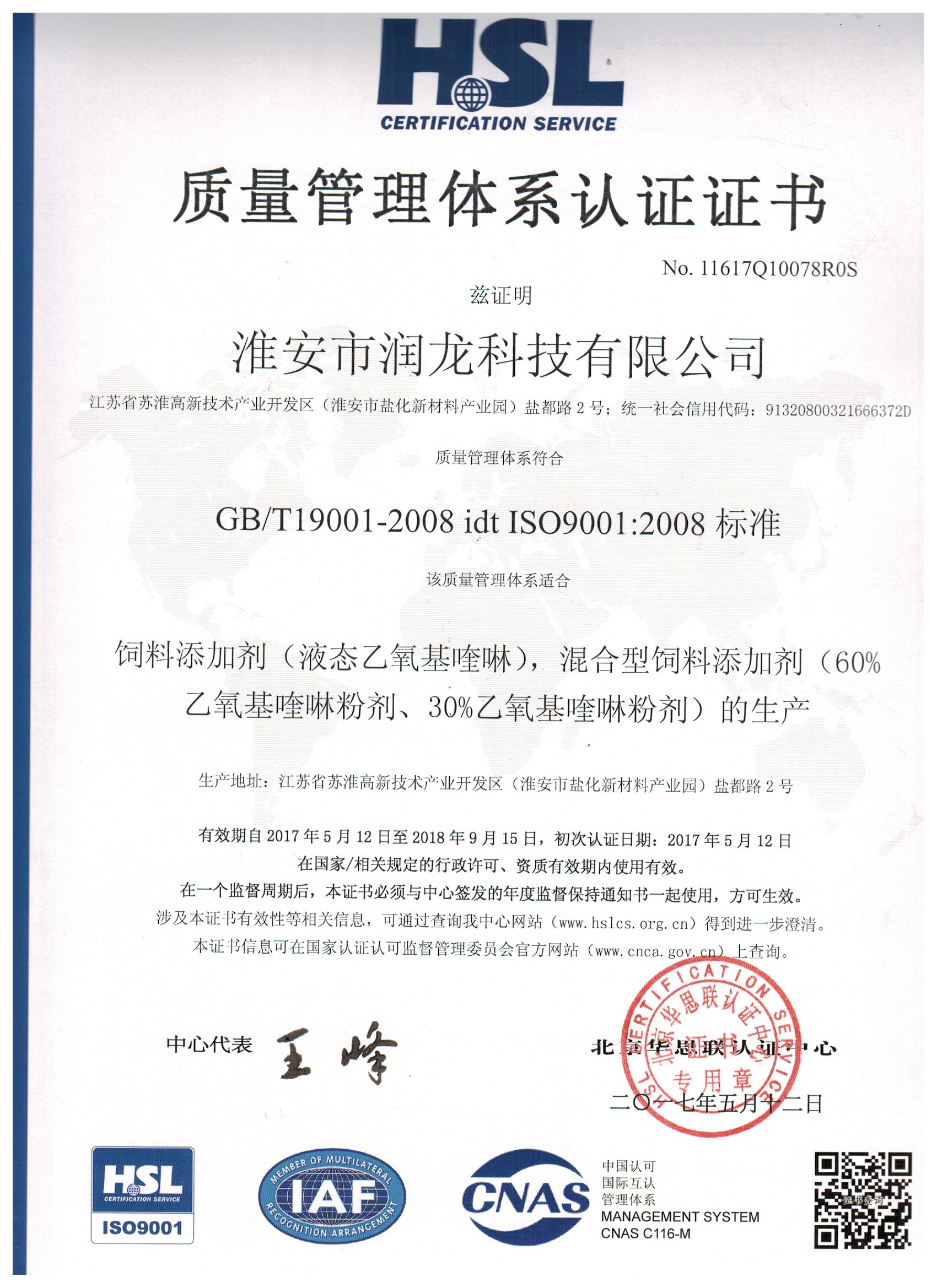 潤龍科技乙氧基喹啉自投產(chǎn)以來,生產(chǎn)穩(wěn)妥、安全、質(zhì)量可靠,生產(chǎn)理念堅持走全球一體化道路,所投產(chǎn)的產(chǎn)品全部基于國際質(zhì)量水平的技術(shù)基礎(chǔ)之上實(shí)施,主營產(chǎn)品“乙氧基喹啉”已家喻戶曉,暢銷亞洲、歐洲、南美洲、北美洲、大洋洲等30多個國家和地區(qū),年出口占比高達(dá)80%以上。同時,與國內(nèi)多家百強(qiáng)企業(yè)形成強(qiáng)力的合作關(guān)系。